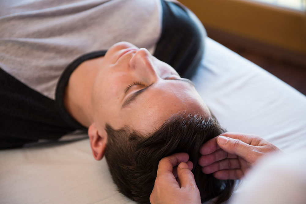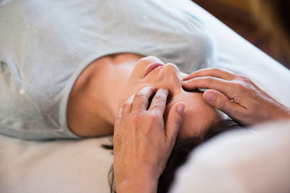 Tiefgreifender Körperprozess. Die Hände berühren sanft Gesicht, Kopf und Hals in bestimmter Abfolge. Das regt den körpereigenen Energiefluss an, sorgt für entspannte Muskulatur und strahlendes Aussehen.